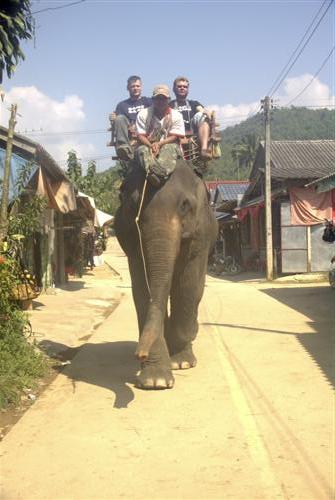 Auf dem Weg dorthin treffe ich noch auf ein paar Deutsche auf einem Elefanten
