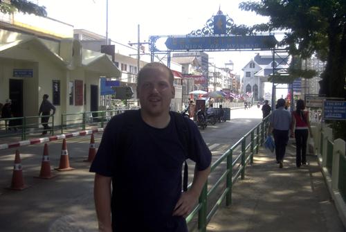 Kurz vor Abholung des Reisepasses bei der burmesischen Grenzbeamtin lasse ich mich auf der Brücke fotografieren. Werner ist schon weit vorgegangen.