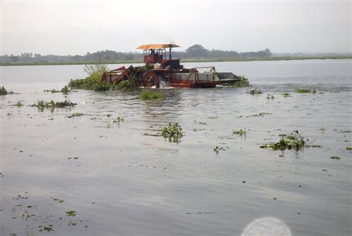 Hab ich auch noch nie gesehen. Der fährt im See rum und fischt bestimmte Pflanzen raus.