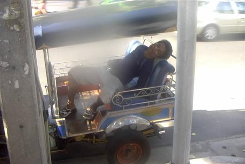 Zurück im Touristenviertel wartet ein Tuk-Tukfahrer auf Kundschaft.