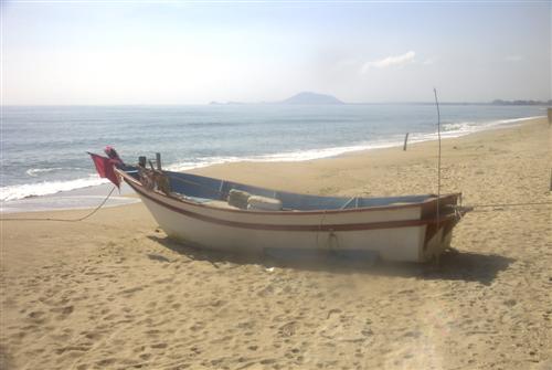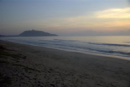 Gegen sieben dämmert es. Ich beobachte die Fischerschiffe am Meereshorizont in einer Linie fahren. Sie machen langsam alle das Licht und so sieht man eine lange Kette von Lichtern am Meereshorizont. Ich gehe die leergefegte Strandpromenade entlang in der Hoffnung, etwas Schmackhaftes zu finden.