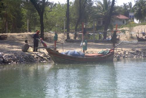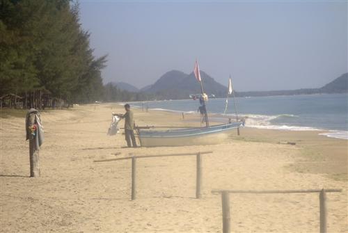 Ich halte inne und sehe einige kleine Fischerboote mit Fischern drauf, die ihren Fischfang nachbereiten. Ich setze mich einfach hin und genieße den Augenblick, die Stille und das Glück.