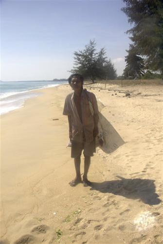 Ich treffe auf einen ärmlich wirkenden Einheimischen. Ich gebe ihm ein paar Münzen. Dafür lichte ich ihn ab. Er ist einer der Wenigen, die mir an diesem Strandspaziergang begegnen.