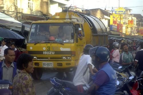 Es gibt wahnsinnig viele Leute am Bahnhof von Hat Yai, die mich irgendwo hinfahren wollen. Ich bahne mir einen Weg, überquere die Strasse und frage einen Mann auf der Strasse, wo der Lokalbus nach Songkhla abfährt. Mit diesem Mann gehe ich zu der Bushaltestelle nicht weit vom Bahnhof weg. Selbst auf dem Weg zur Bushaltestelle werde ich noch versucht, von Transportalternativen überzeugt zu werden.