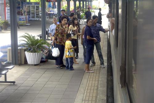 Im Bahnhof von Surat Thani. Von hier aus fährt man mit "Transport" zu Ko Samui oder anderen Inseln.