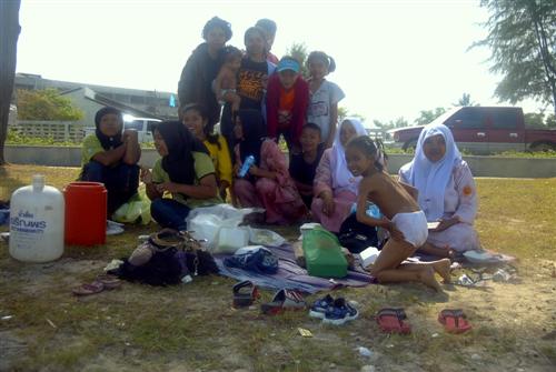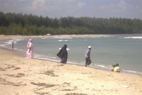 Ach, es geht noch richtig bunt zu am Strand. Da sehe ich eine moslemische Malayenfamilie mit vielen Kindern. Wir kommen uns auf Anhieb näher.