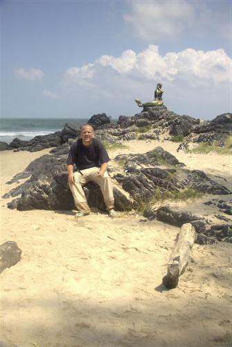 Dann komme ich zum Kap Simila, wo die "Meerjungfrau von Kopenhagen" steht. Die Meerjungfrau ist eine aus Dänemark stammende Statue aus Messing ungefähr einen Meter breit und einen Meter lang.