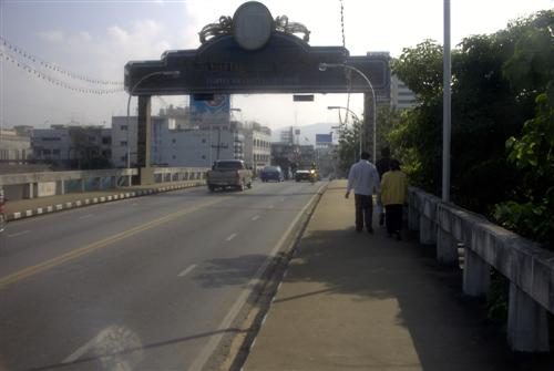 Der Bus von Songkhla nach Hat Yai fährt gegen 7.45 Uhr ab. Die Busfahrt endet in der Nähe des Bahnhofs von Hat Yai. Mir ist es lieber während der Fahrt den Busfahrer zum Halten zu Bewegen, als ich den Bahnhof erblicke, als irgendwo rausgelassen zu werde, wo ich den Weg zum Bahnhof nur schwer finde. Ich steige also in Sichtweise zum Bahnhof auf einer dicht befahrenen Brücke aus. Um das Aussteigen anzukündigen, klopfe ich auf Metall und der Busfahrer weiß Bescheid.