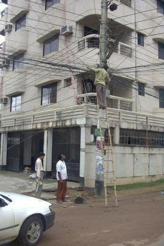 Der Flug geht 9 Stunden bis Dakah, der Hauptstadt Bangladeschs. Als wir aus dem Flugzeug aussteigen, kommt mir das erste Mal tropische Schwüle entgegen, was ich aber als sehr angenehm empfinde. Trotzdem komme ich ganz schön ins Schwitzen. Wir erfahren, dass die Anschlußmaschine nach Bangkok bereits abgeflogen ist. Sie wartet nicht. Egal, die Umgebung ist hier so entspannt. Ich klinke mich einfach ein. Die Verspätung unseres Flugzeugs aus Frankfurt war erheblich. So lange wartet keine Anschlußmaschine. Nun haben wir einen Tag Aufenthalt hier. Die Fluggesellschaft läßt sich was einfallen. Alle Bangkok-Passagiere werden die Nacht in einem Hotel in Dakah untergebracht, im Top Mid-Hotel. Ich freue mich auf die Hauptstadt Bangladeschs, auch wenn wir nur ein Transit zum Hotel erhalten. Den Pass behalten die Immigrationsoffiziere am Flughafen ein, ein offizielles Visum bekommen wir nicht. Wir verlassen den Flughafen, zwei weitere Deutsche und eine Thai-Frau sind dabei. Mit einem gecharterten Taxi geht es dann zum Hotel. Tausende von Menschen stehen am Flughafenzaun, um was abzubekommen vom Reichtum der Touristen. In Dakah geht es holprig zu. Wir schießen über ein Bahnhofsgleis, wo wahnsinnig viele Menschen versammelt sind. Sie warten wahrscheinlich auf Essensspenden von Zugreisenden.