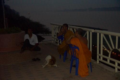 Der Bus bringt mich in einer Stunde von Udon Thani nach Nong Khai. Ich suche mir ein Quartier für die Nacht und werde schließlich auch fündig. Für 100 Baht die Nacht wohne ich in einem 8-qm-großen Zimmer mit einer Glühbirne an der Decke, mit Holzwänden, einem Bett und einem Stuhl. Beim Einchecken wird mir ein Visum nach Laos angeboten für 1500 Baht; Gültigkeit 1 Monat. Ich lehne ab, da ich mit Thailand als Reiseland genug ausgelastet bin. Danach gehe ich an den Mekong. Ich stoße auf einige Mönche; die dem Sonnenuntergang über dem Mekong entgegensehen.