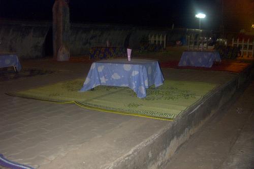 Die Promenade ist ein paar Kilometer lang. Es gibt viele Restaurants. Auf dem Bürgersteig werden z. T. Decken ausgelegt, und die Leute setzen sich drauf und nehmen ihr Essen zu sich.