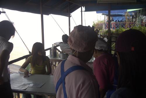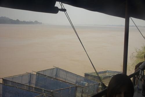 Ich gehe in einem Restaurant am Mekong zu Mittag essen. Da die Leute nur thailändisch sprechen, ist es für mich am einfachsten, auf die Karte zu zeigen.