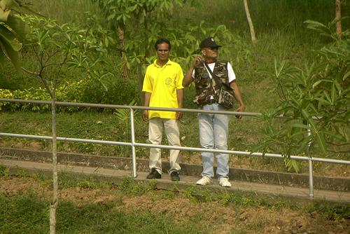 Ich verlasse die Brücke und stoße dann auf einen lustigen Thailänder im Militär-Dress. Gerne läßt er sich von mir ablichten.