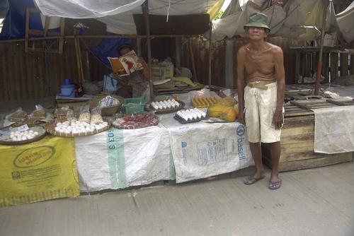 Der Opa vor dem Stand.und lesende Standbesitzerin