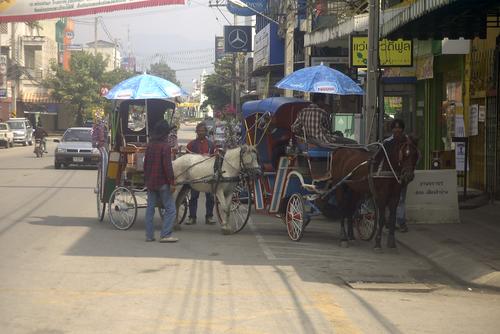 Lampang ist die einzige Stadt Thailands, in der bunt bemalte Kutschen unterwegs sind. Deren Lenker tragen gar stil echt Cowboy-Hüte und Stiefel.