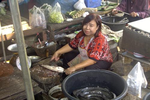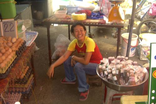 Ich gehe zum Markt. Hier gibt es alles. Angefangen von einer reichen Auswahl an Top-Schuhen, über Spielzeug bis hin zu da liegendem stinkenden Fisch.