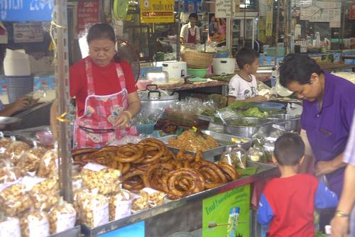 Am Nachbartisch sitzt ein nettes thailändische Pärchen. Wir