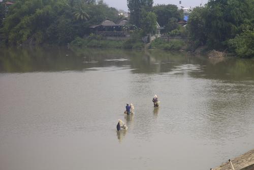 Ein paar hundert Meter von der Geschäftswelt entfernt verläuft der Wang, ein kleiner Fluß. Dieser wird so breit wie ein See hier. Fischer werfen hier ihre kleinen Netze aus.