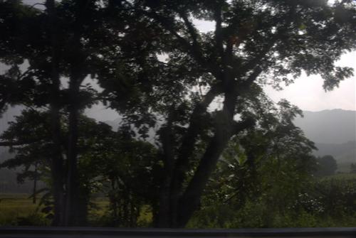 Ich sehe Berge näher auf uns zukommen. Auf der Mitte der Strecke steigen wir um in einen kleineren Bus. Jetzt wird es enger.