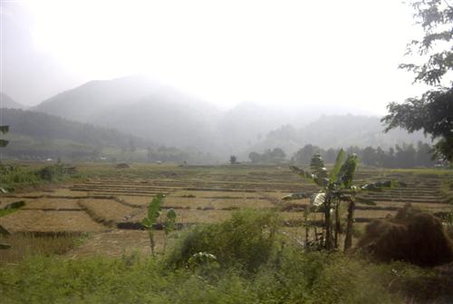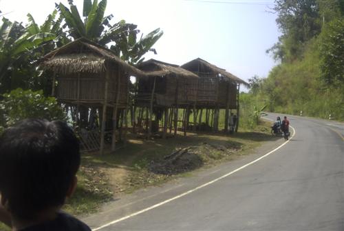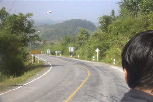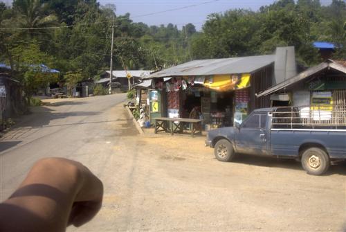 Hier sind wir oberhalb von Ban Huey Kon. Gerade haben wir einen grenznahen thailändischen Militärposten passiert.