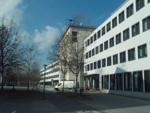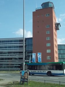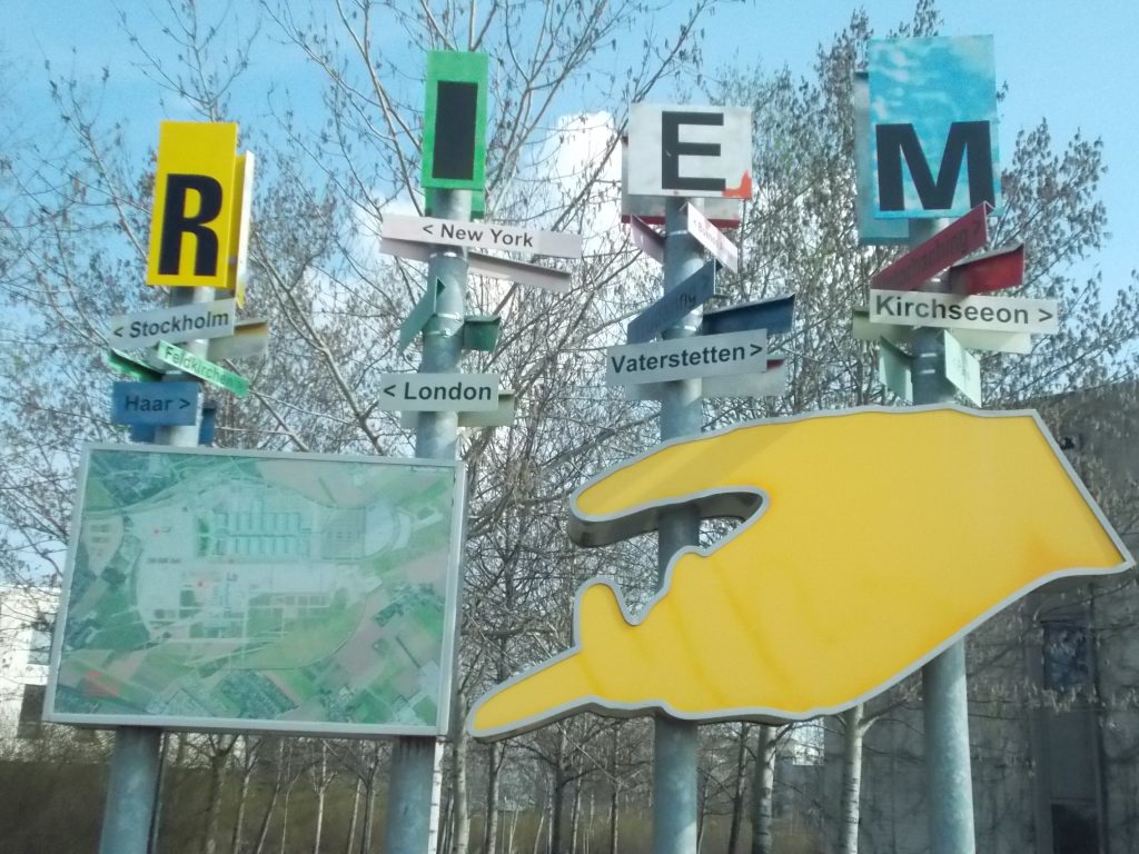 Am Denkmal „Wappenhalle des Flughafens München-Riem“