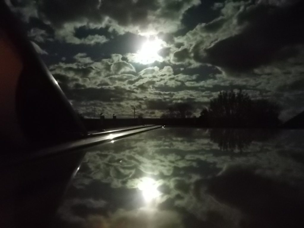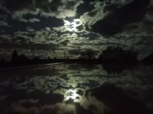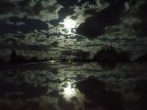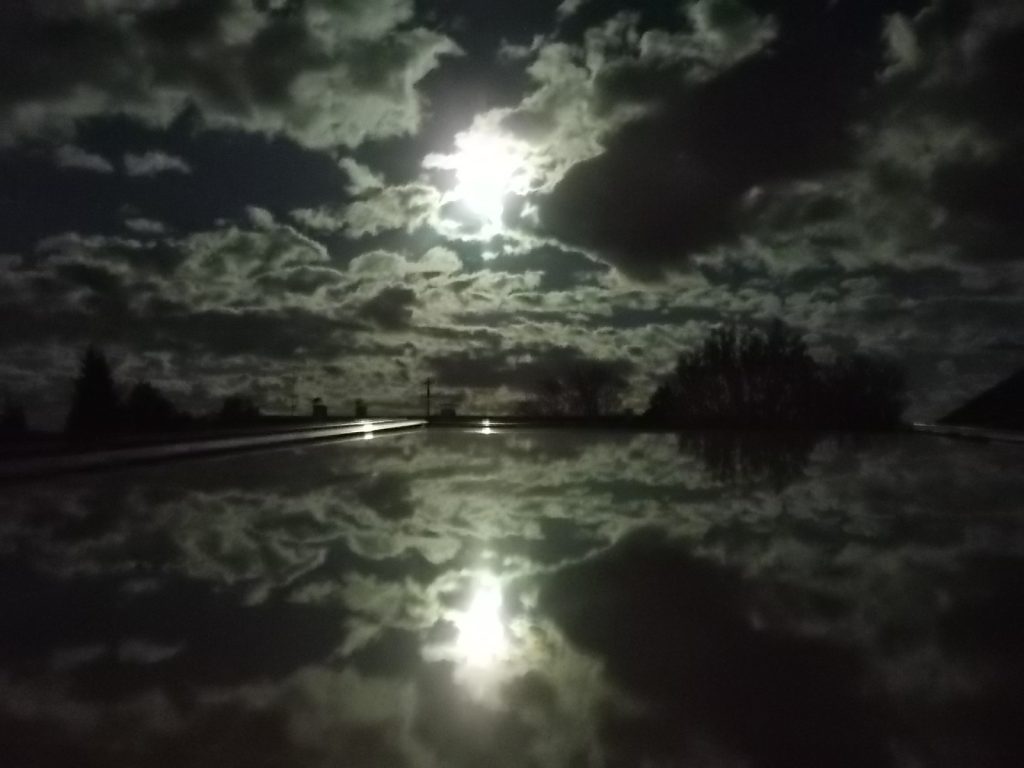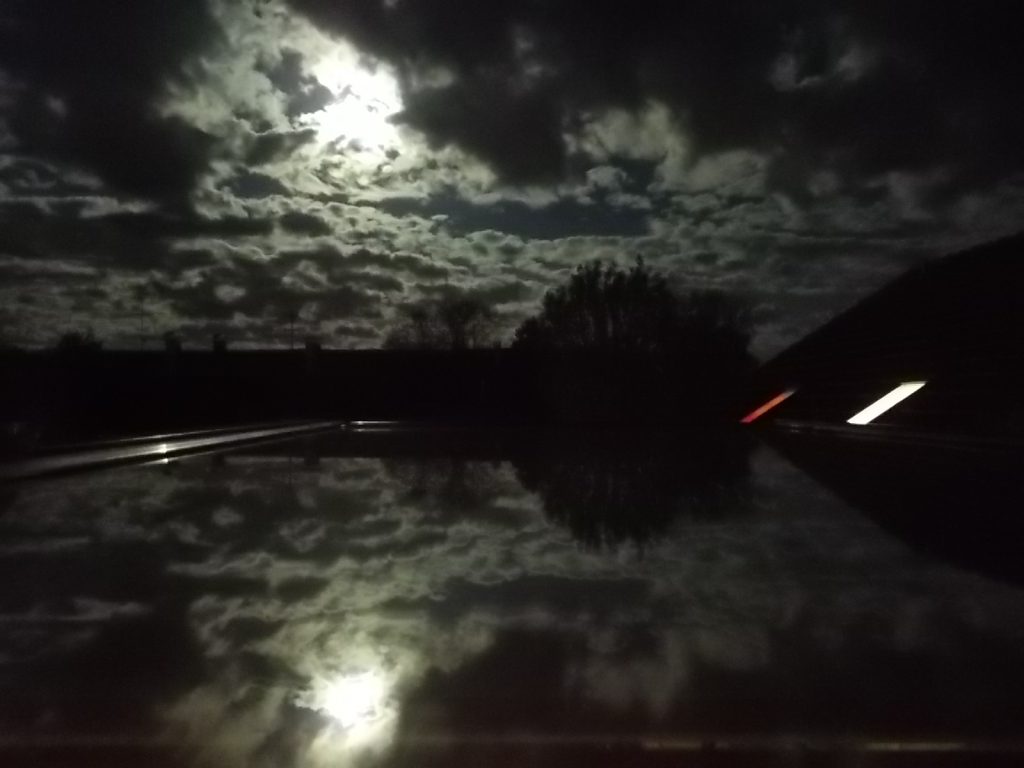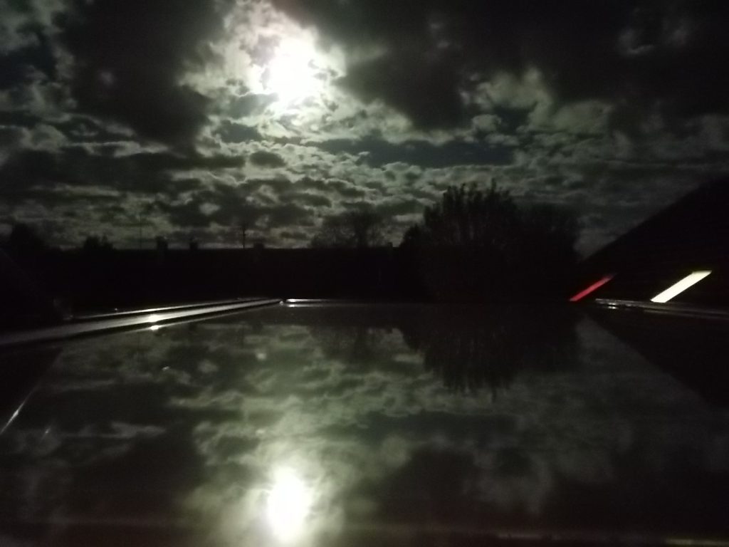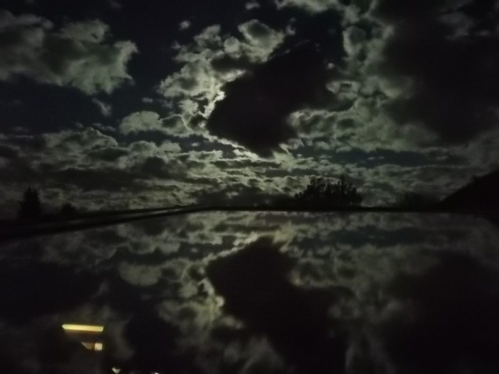 25.05.2021: Nachthimmel über Pastetten mit Wolken und Vollmond von meinem Dachfenster aus